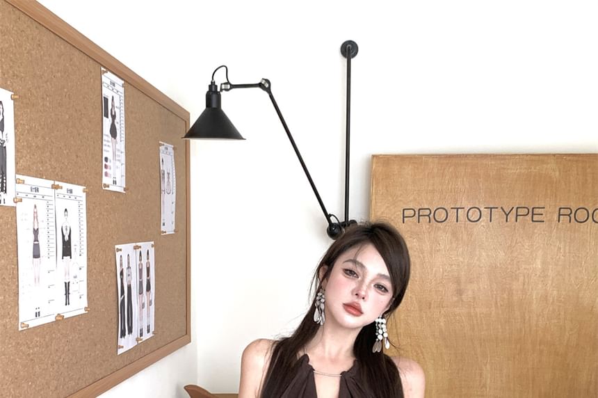 Bodycon Asymmetrical Halter Plain Mini Dress