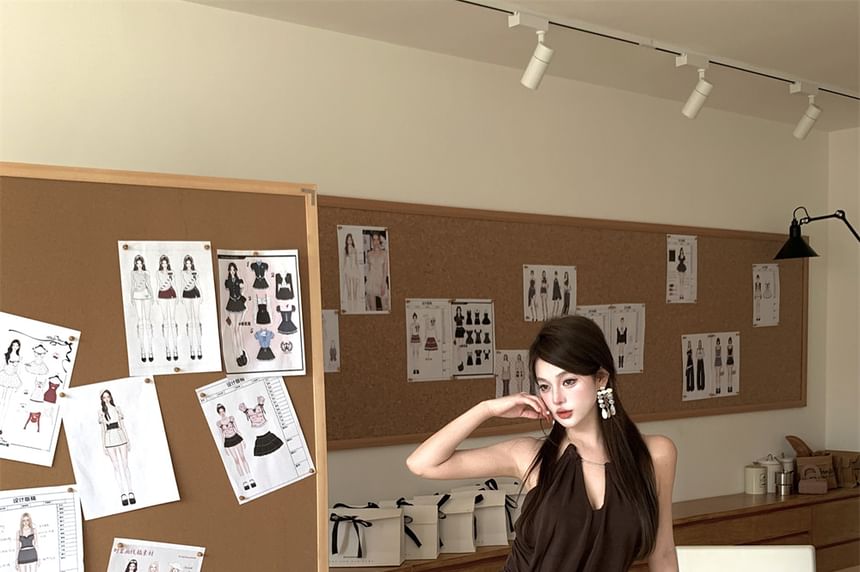 Halter Plain Asymmetrical Mini Bodycon Dress