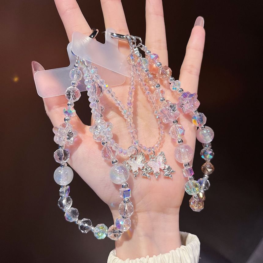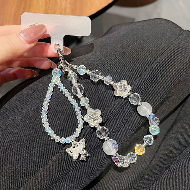 Butterfly Faux Crystal Beaded Wrist Phone Strap with Lanyard Pad