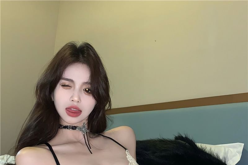 Bow Mesh Panel Lace Camisole Top