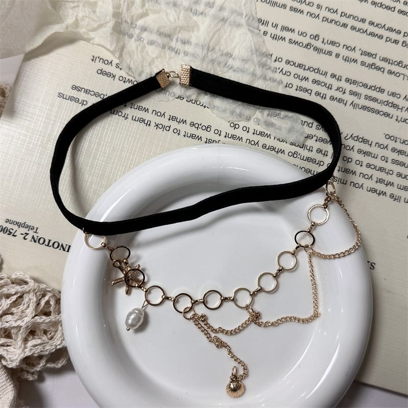 Chain Thigh Faux Pearl Starfish Layered Shell