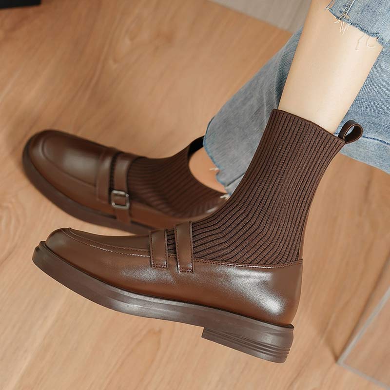 Introducing our elegant Chic Pure Color Round Toe Martin Boots. With its sleek design and comfortable round toe, these boots will elevate any outfit. Made with premium materials, they offer both style and durability. Perfect for any occasion, step out in confidence with these chic boots.