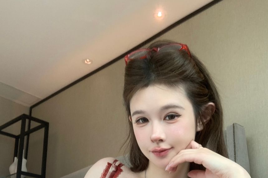 Crop Cami V-Neck Plaid Bow Top
