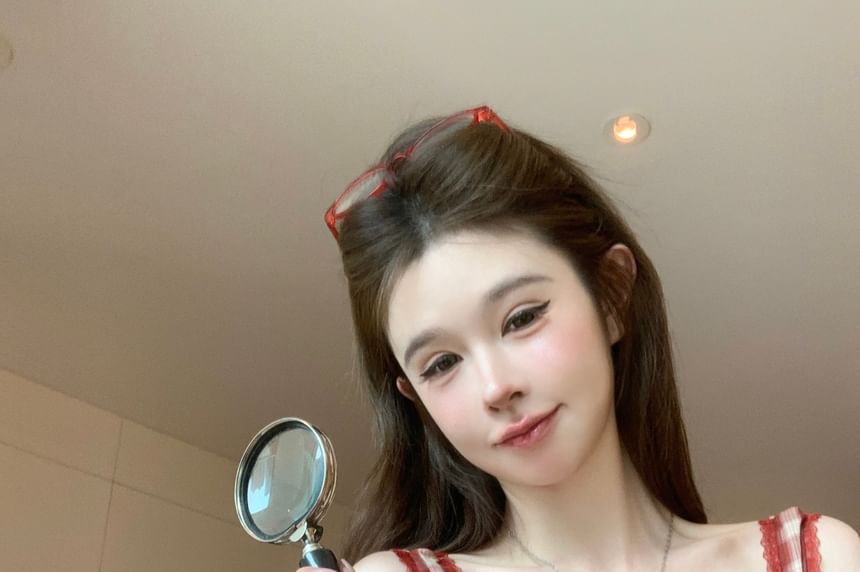 V-Neck Plaid Bow Crop Cami Top