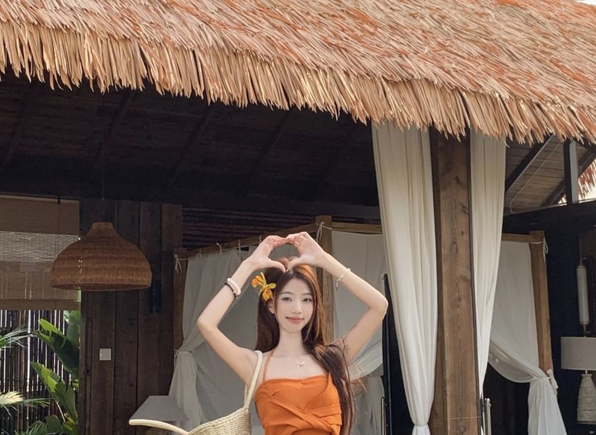 Crop Halter Slim / Fit Rise Tie A-Line Top Cami Wrap Plain Skirt Mid Knot Maxi Dye