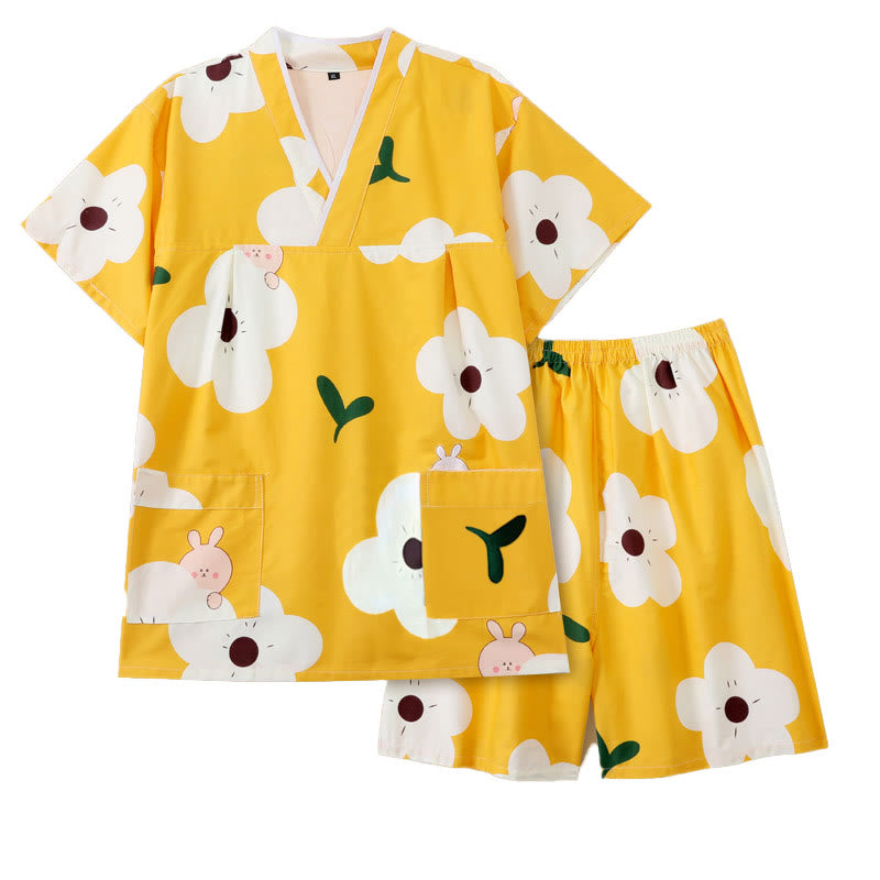 This cute flowers print V-neck t-shirt and shorts pajamas set is perfect for your relaxing nights. The soft and breathable fabric ensures maximum comfort while the elegant design will make you feel stylish and beautiful. Get a good night's sleep with this lovely pajama set.
