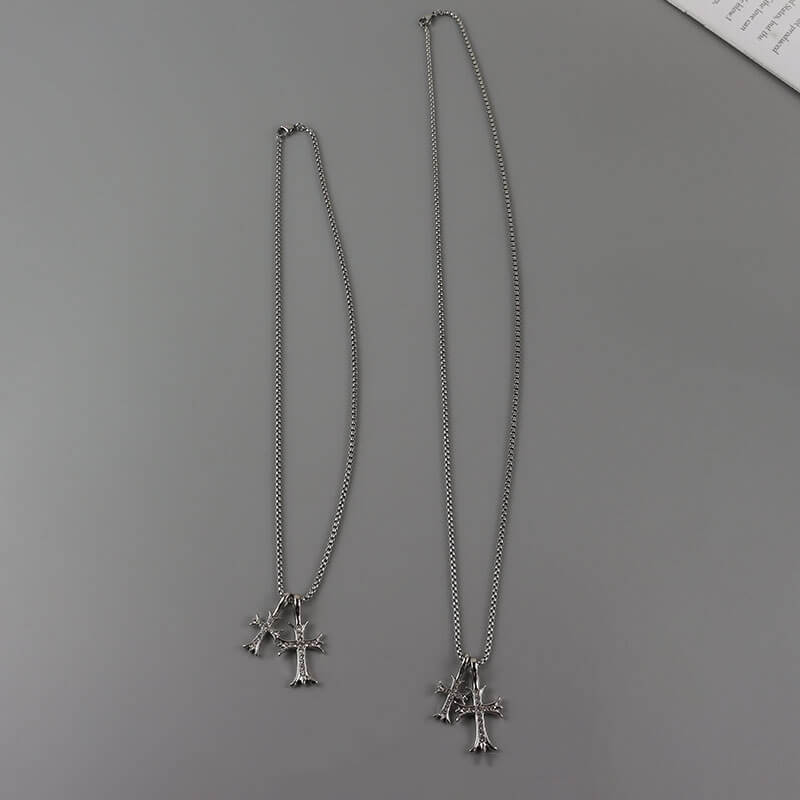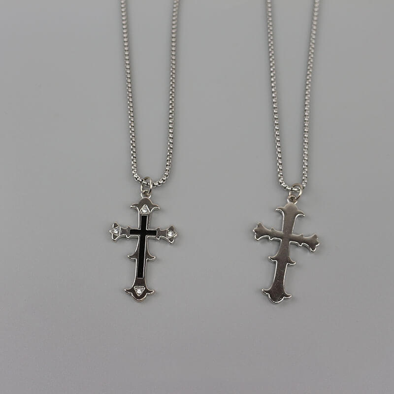 The Double Cross Necklace is the perfect blend of elegance and edginess. Its unique design features two crossed pendants, representing faith and fashion. Made with high-quality materials, this necklace is a statement piece that will elevate any outfit. Embrace your inner kawaii with this must-have accessory.