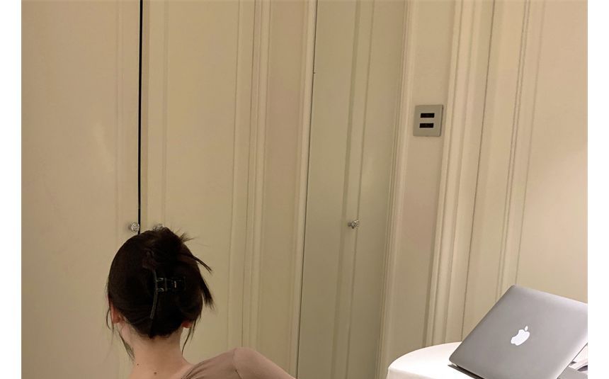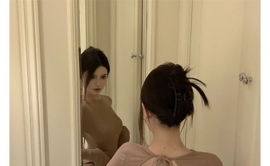 Long-Sleeve Crew Neck Plain Open Back Mini Sheath Dress