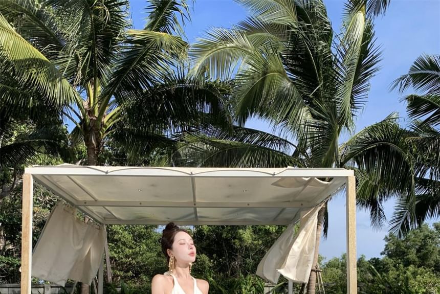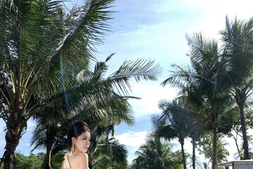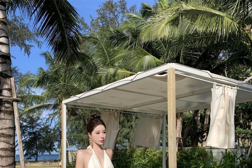 Dress Maxi Plain Halter A-Line V-Neck