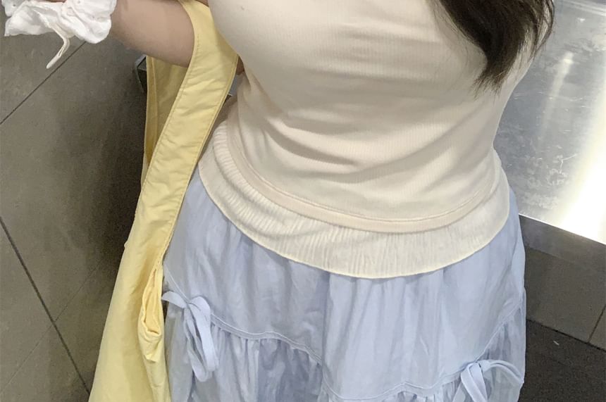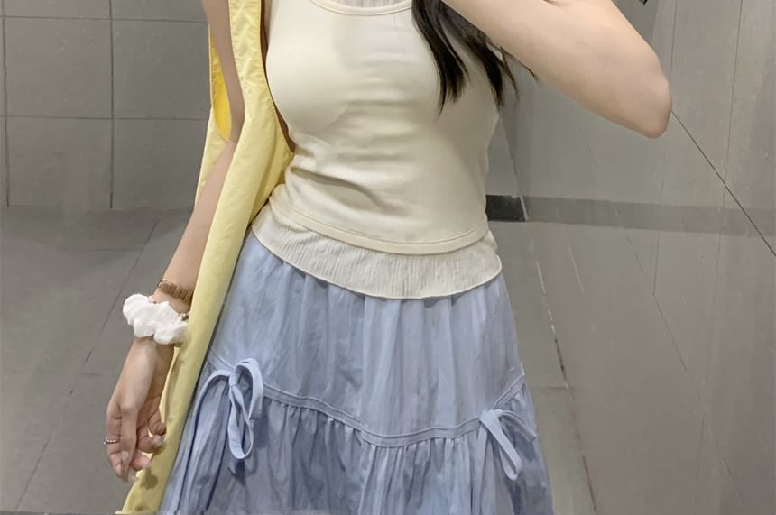 Mock Two-Piece Scoop Neck Two Tone Lettuce Edge Crop Camisole Top