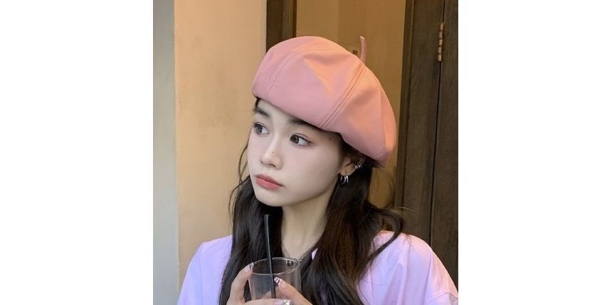Faux Beret Plain Leather Hat