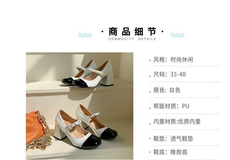 Faux Pearl Cap-Toe Chunky-Heel Mary Jane Pumps