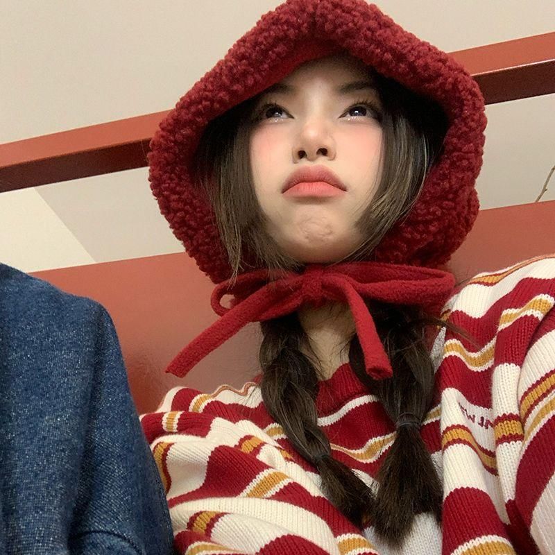 Fleece Hat Knit Beanie Plain Cable Tie-Up /