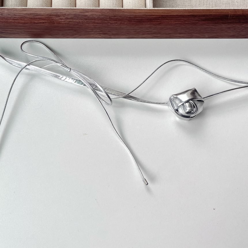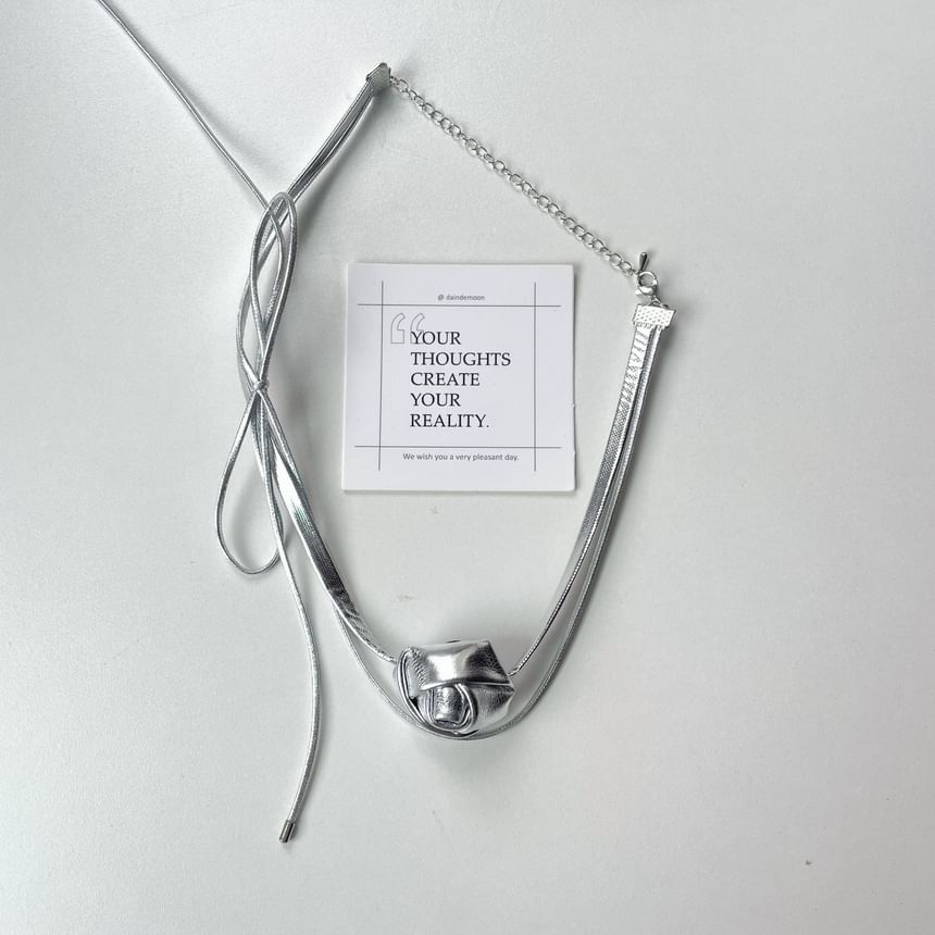 Floral Leather Layered Bow Faux Choker