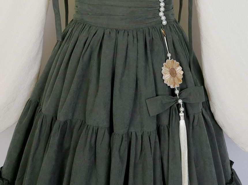 Flower Embroidered Lace Trim Lolita Blouse / Midi Jumper Dress / Set