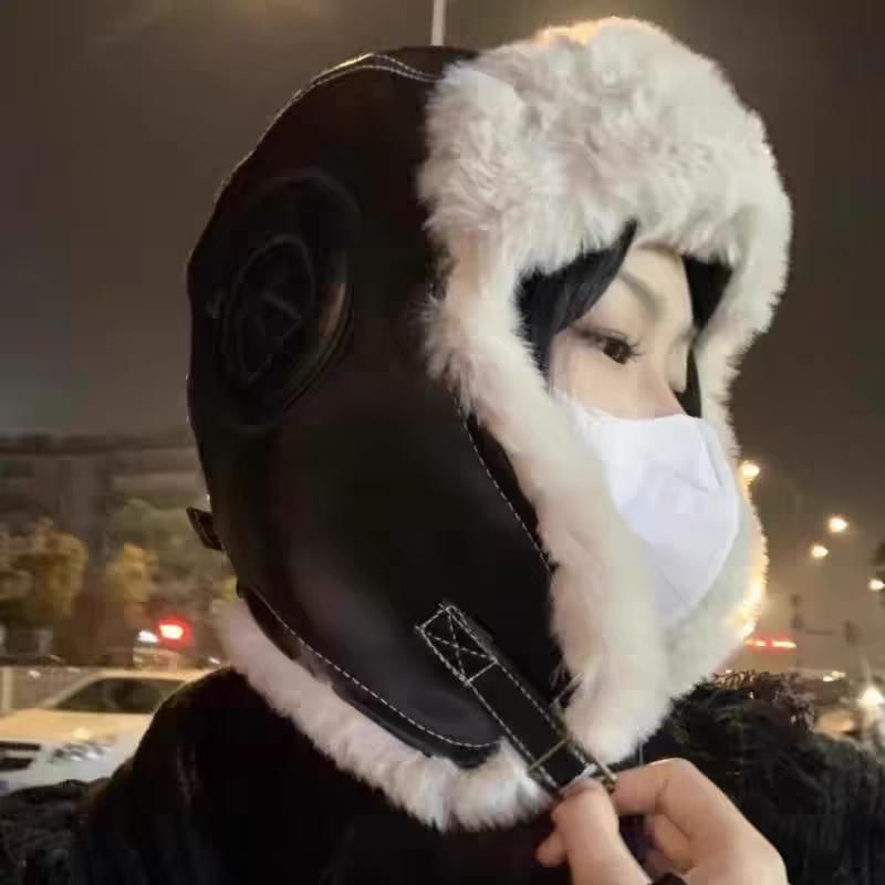 Panel Faux Leather Trapper Hat / Plain Panel Fluffy Hat