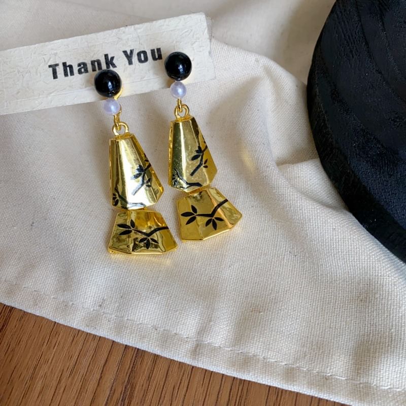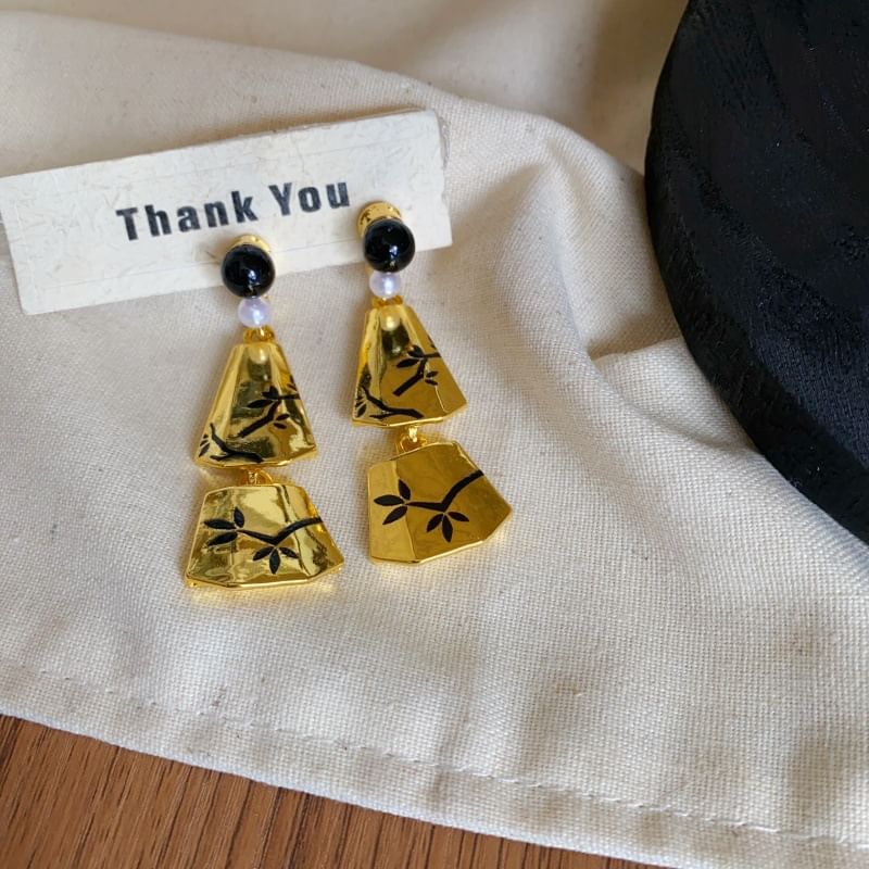 Geometric Branches Pearl Dangle Alloy Faux Earring