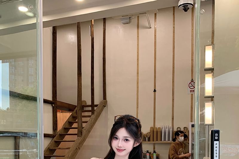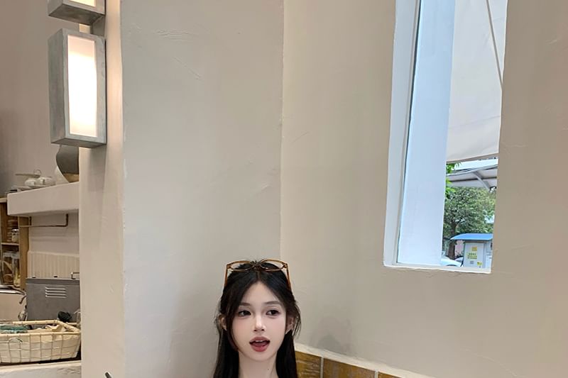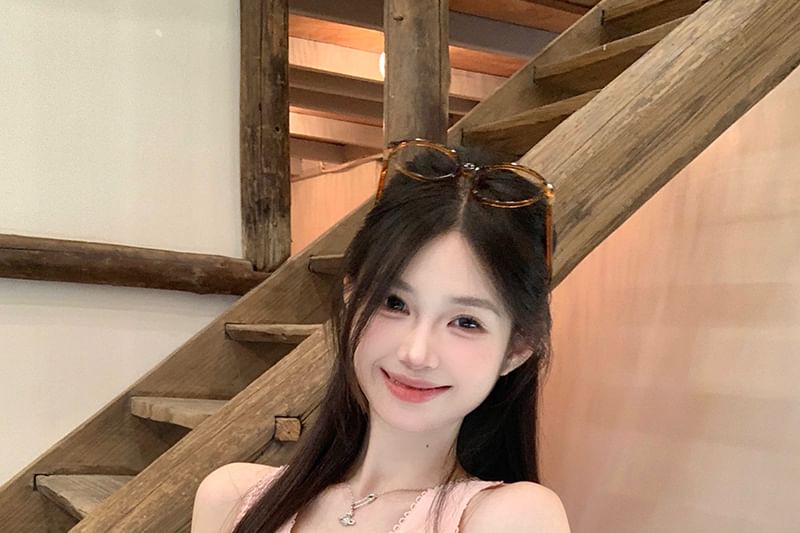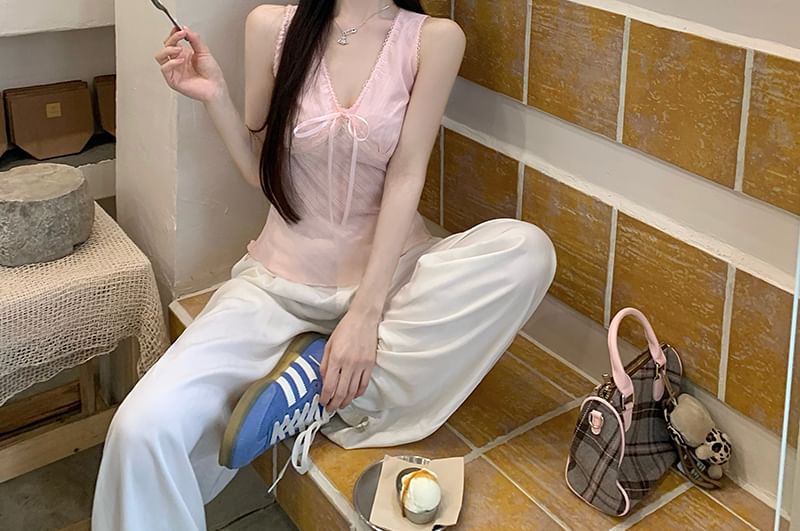 Lace Bow Fit V-Neck Slim Tank Top Trim