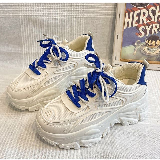 Platform Two Tone Mesh Panel Faux Leather Lace-Up Sneakers