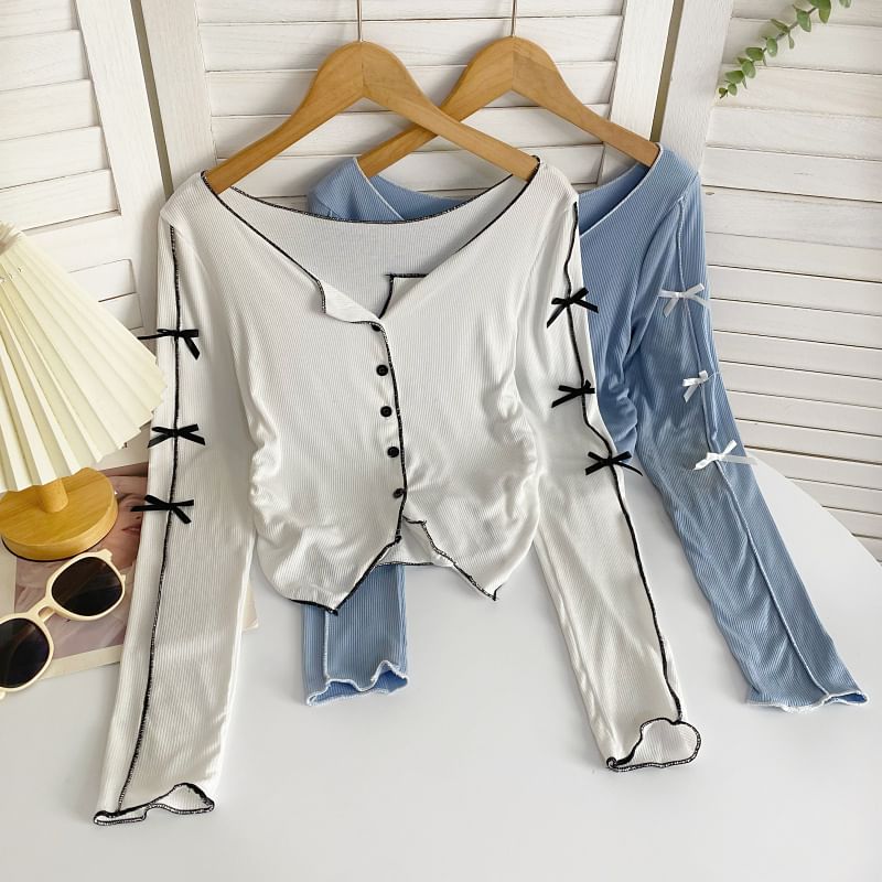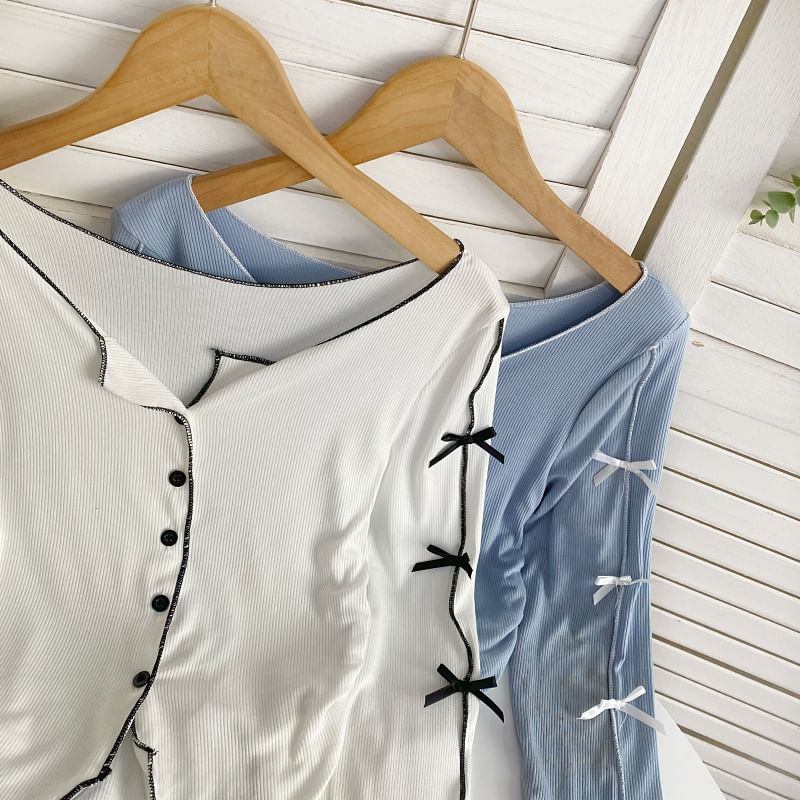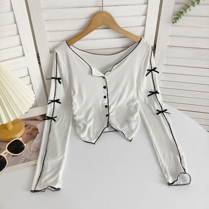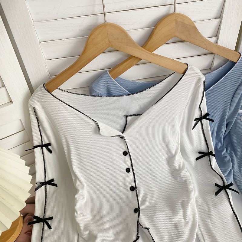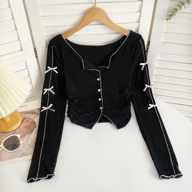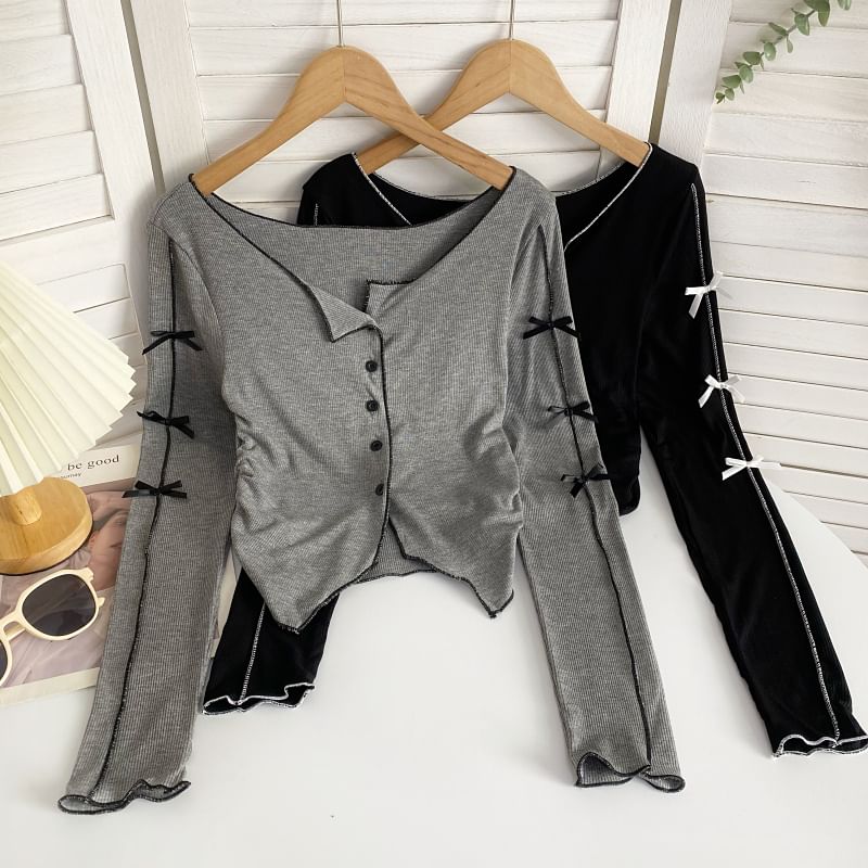 Long-Sleeve Plain Asymmetrical Bow Tee