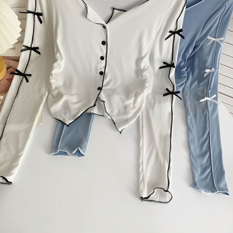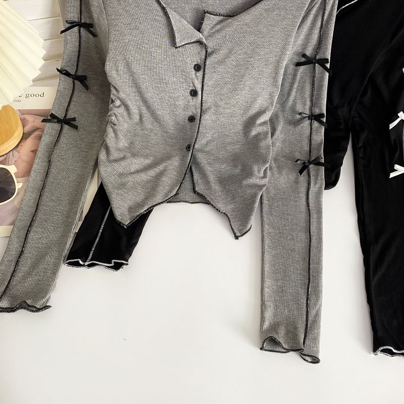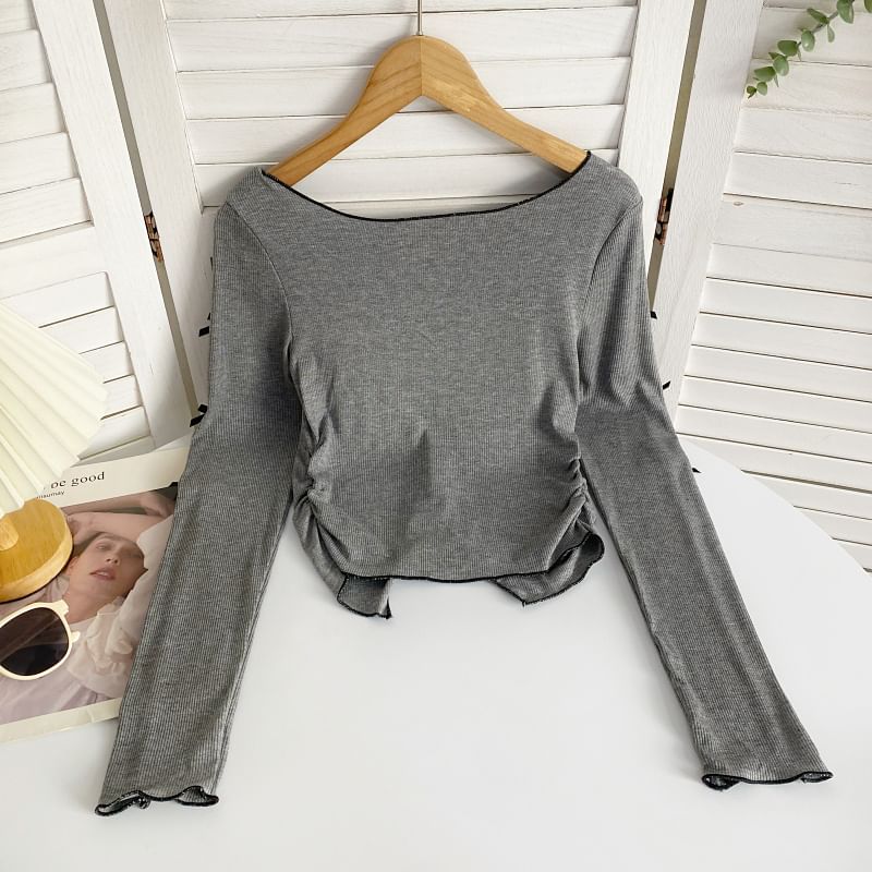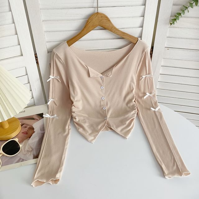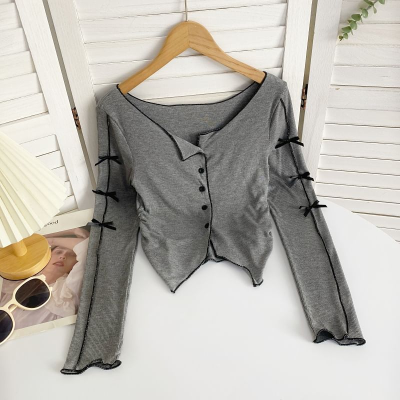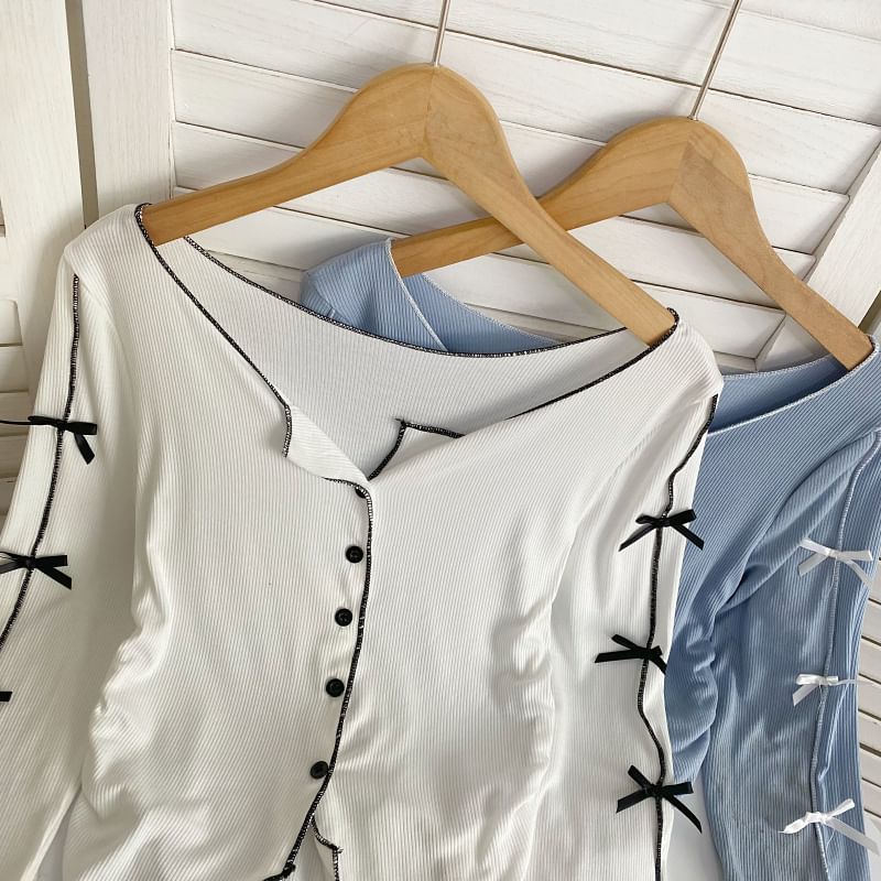 Long-Sleeve Plain Asymmetrical Bow Tee
