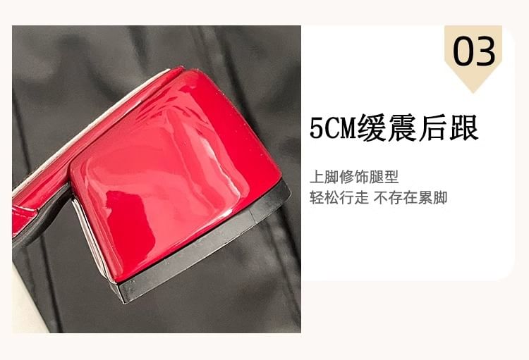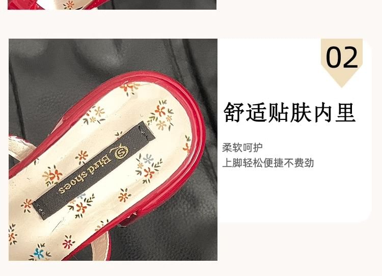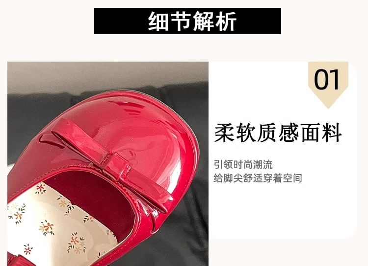 Mary Mules Heel Block Leather Bow Jane Patent