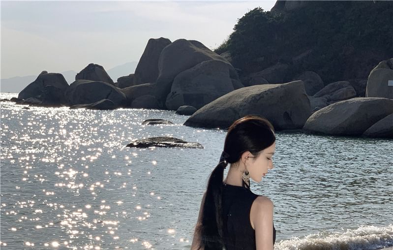 Sleeveless Crewneck Two Tone Maxi A-Line Dress