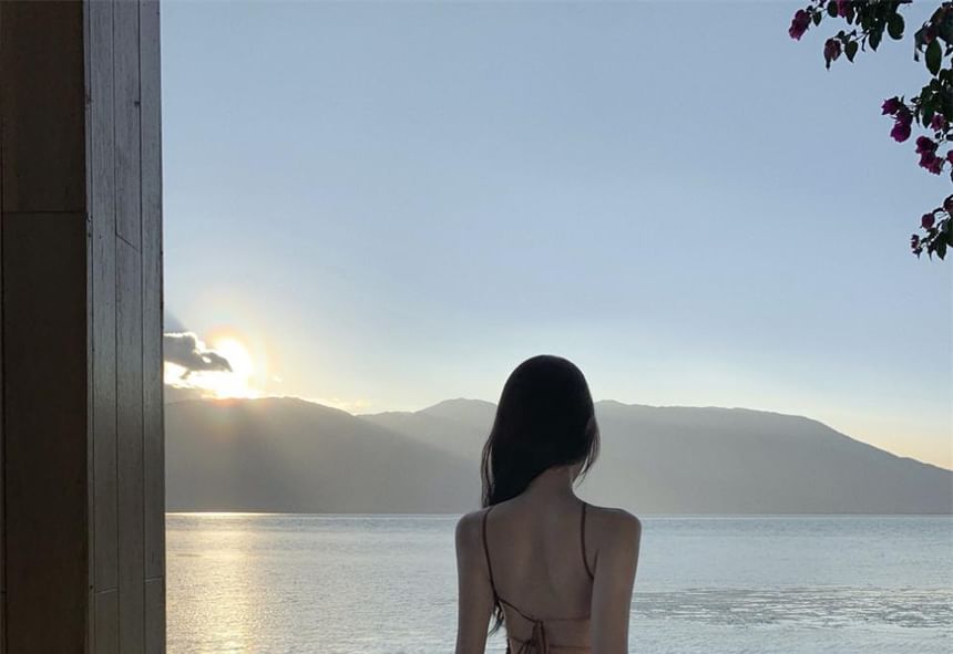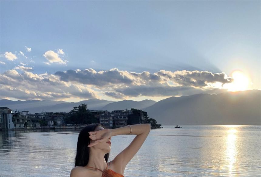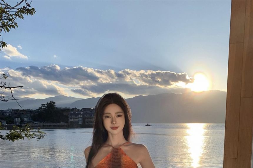Maxi Smocked Tie A-Line Open Halter Back Dye Neck Dress