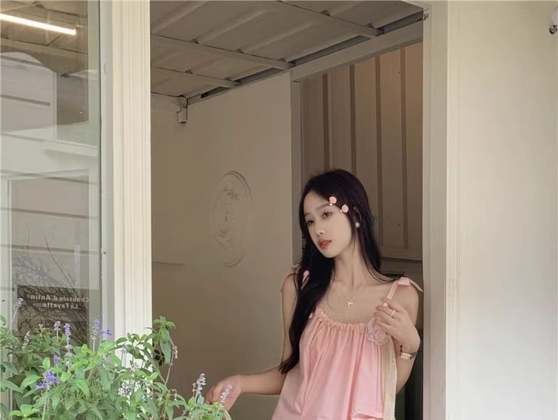 Maxi Strap Detail Sundress Spaghetti Plain Flower