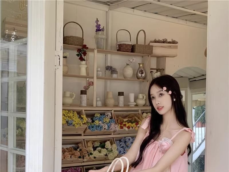 Spaghetti Strap Plain Flower Detail Maxi Sundress