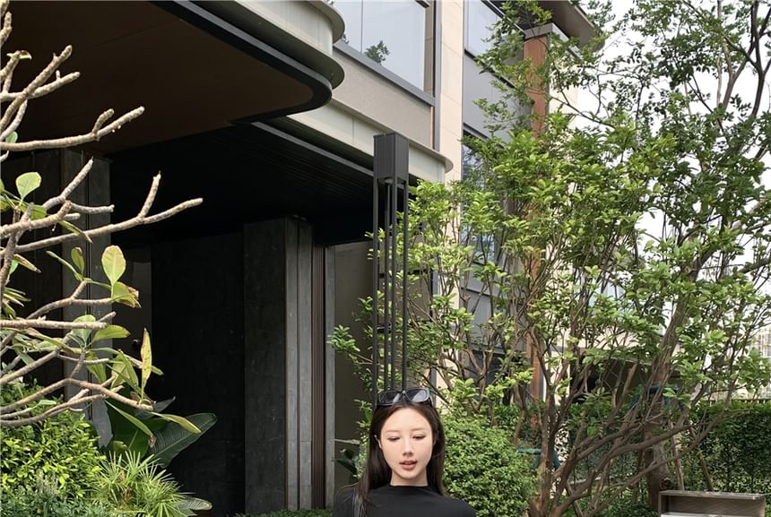 Maxi Tee Mock Skirt Slim / Short-Sleeve Crop A-Line Fit Waist Neck Mid Plain