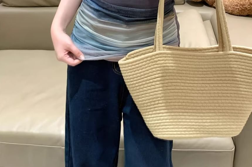 Mesh Slim Color Off-Shoulder Top Fit Block Short-Sleeve