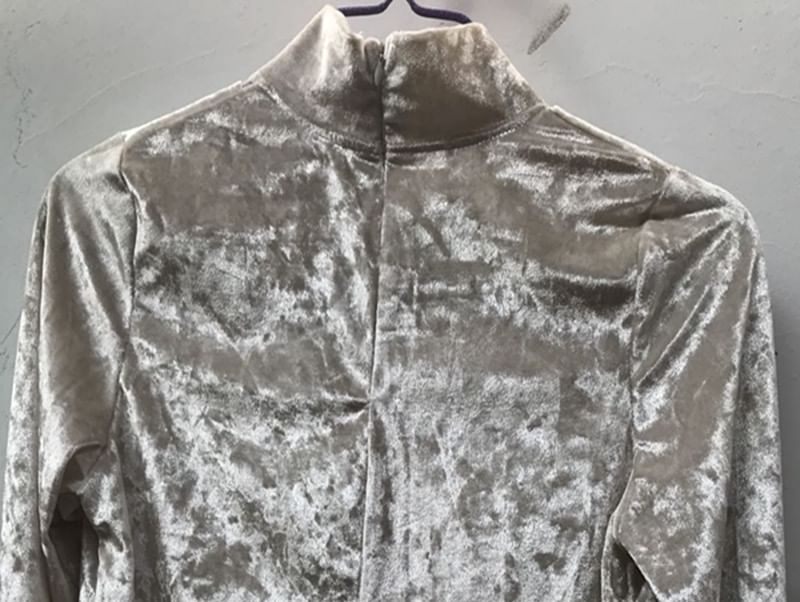 Long-Sleeve Mock Neck Mesh Panel Velvet Top