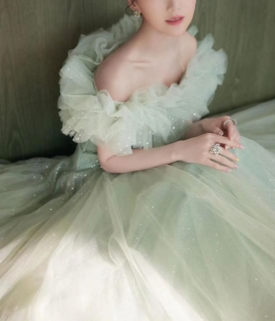 Off Shoulder Ruffle Trim A-Line Evening Gown