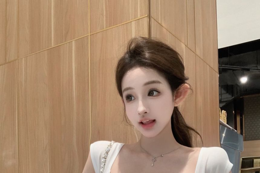 Pants Fit Loose Striped Drawstring Crop Tee Off-Shoulder Trim Waist Short-Sleeve / Plain