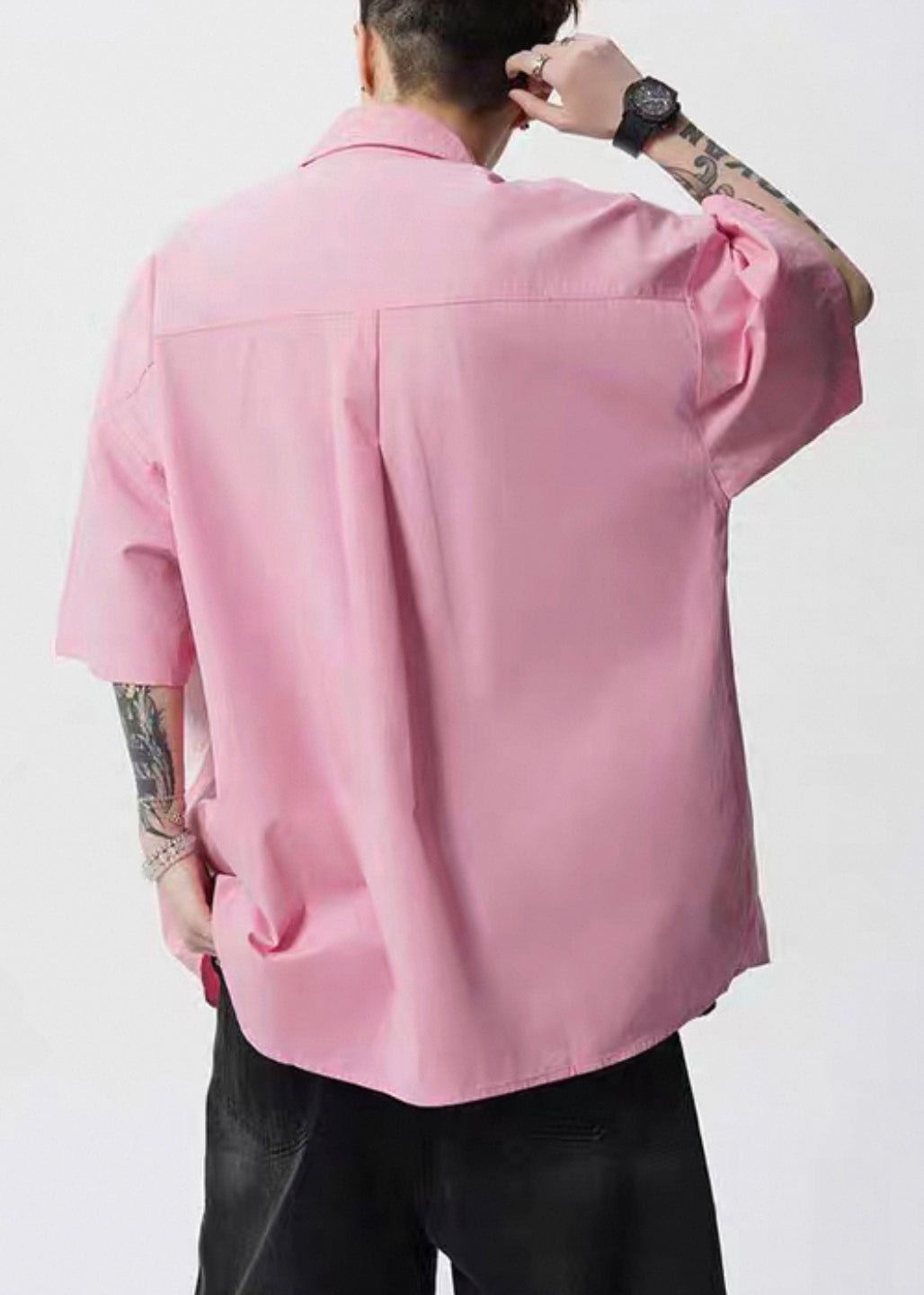 Stylish Yellow Peter Pan Collar Print Button Cotton Mens Shirts Half Sleeve