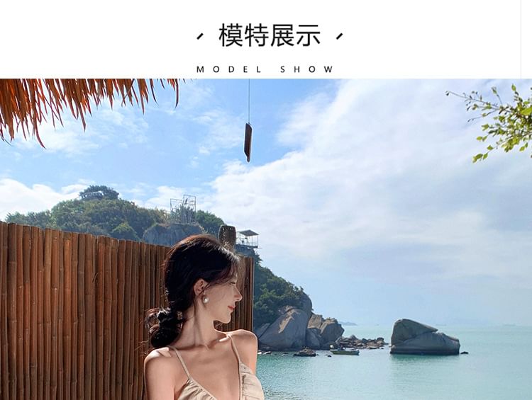 Spaghetti Strap V-Neck Cutout Plain Maxi A-Line Dress