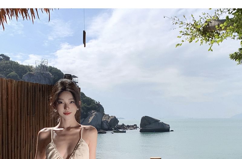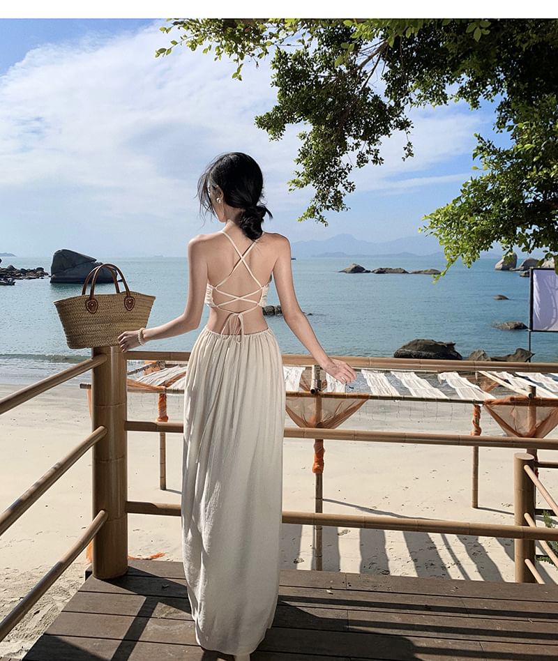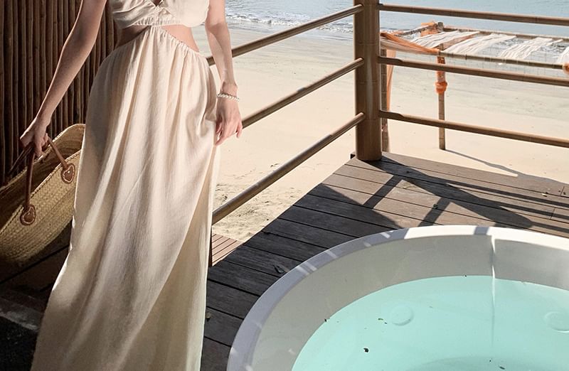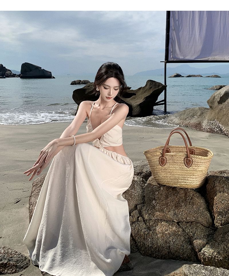 Plain A-Line Cutout Dress V-Neck Maxi Spaghetti Strap