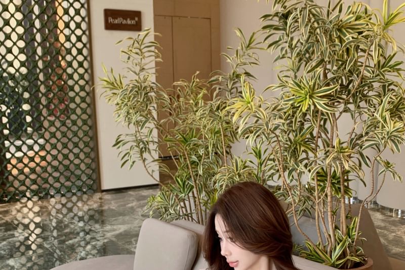 Plain Pencil Front Trim Lace Long Skirt Blouse Ruffle V-Neck Tie Sleeve Mini /