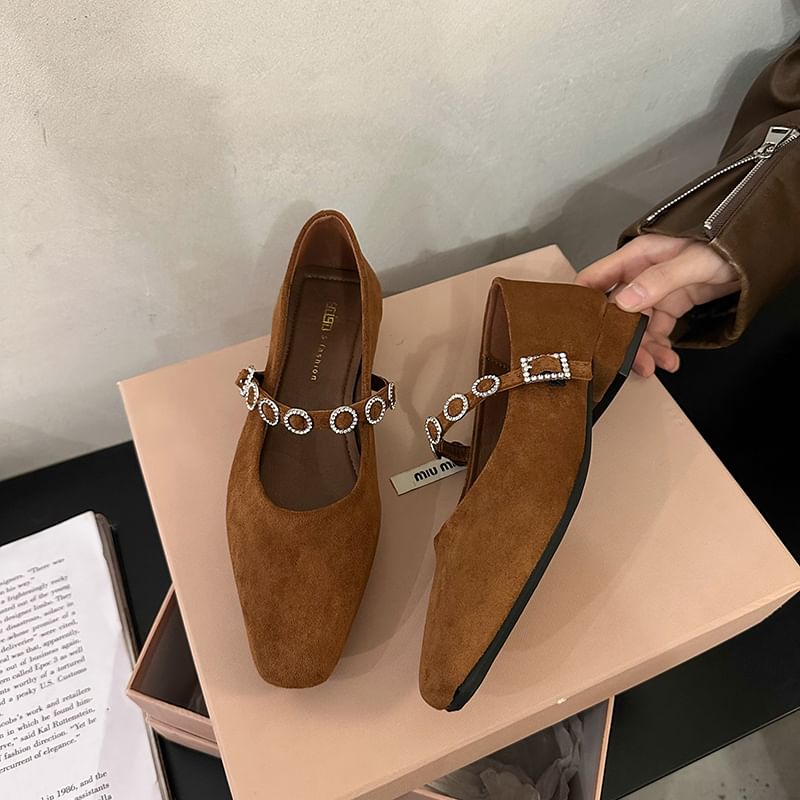 Chunky Heel Rhinestone Accent Mary Jane Pumps
