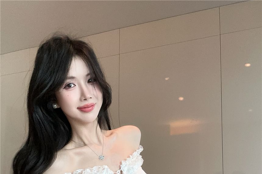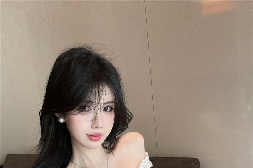 Ruffle Fit Lace-Up Asymmetrical Camisole Lace Top Trim Slim