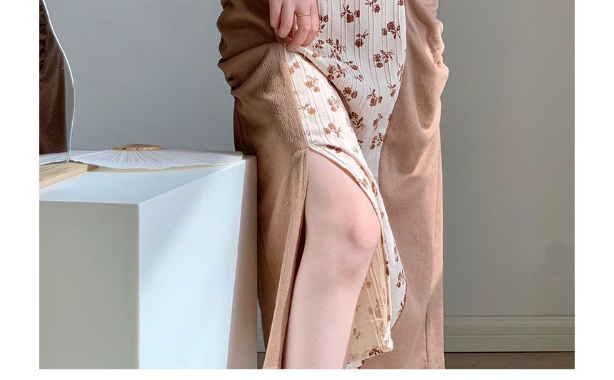 Set: Short-Sleeve Shrug + Spaghetti Strap Floral Print Bodycon Dress