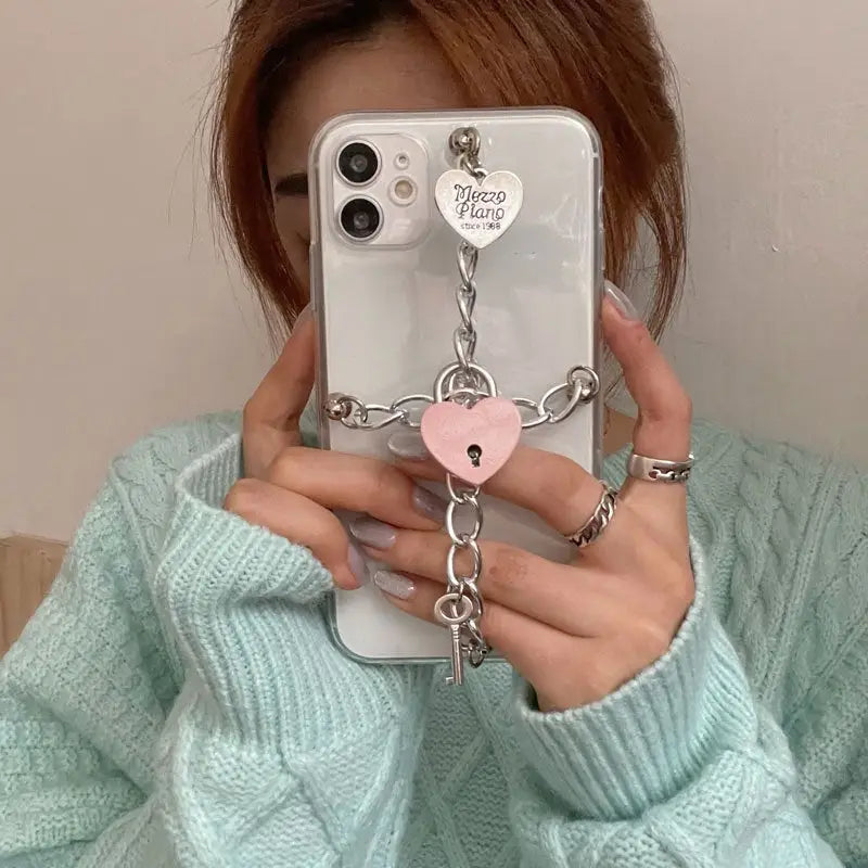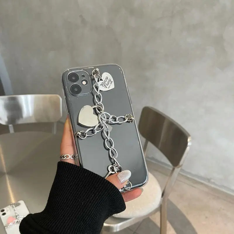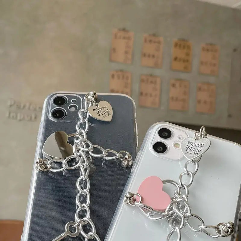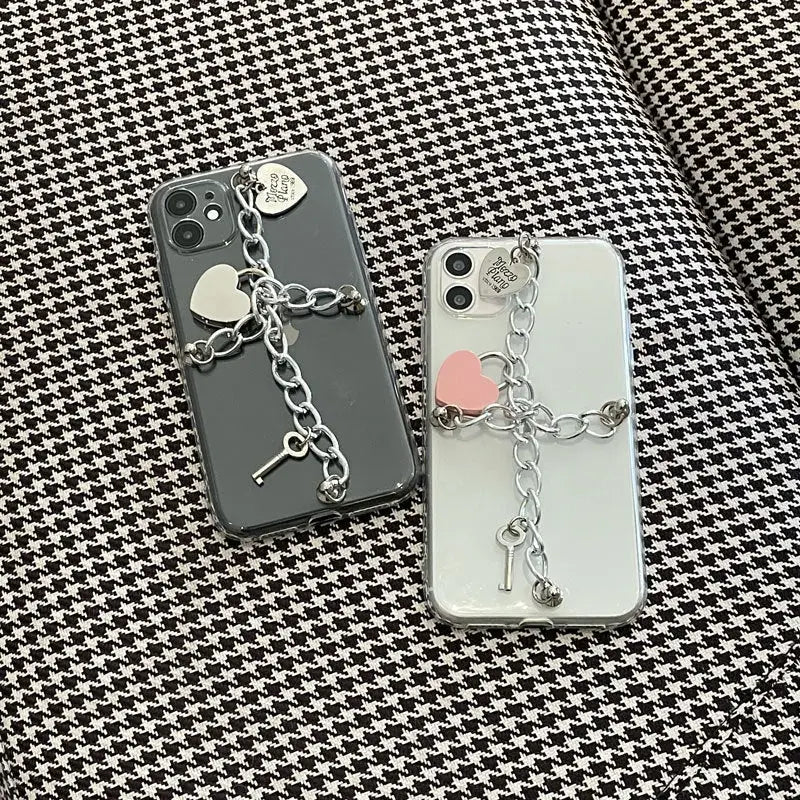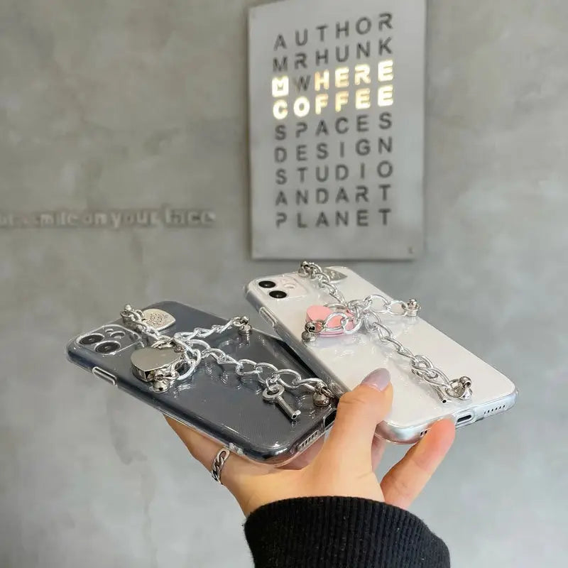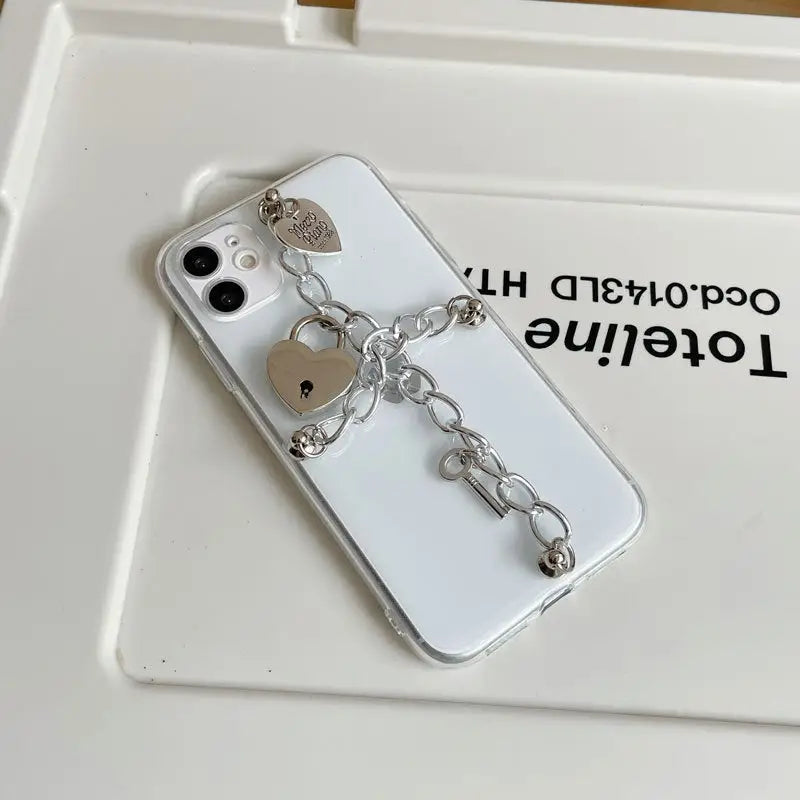 Silvery Chain With Heart Locks iPhone Case BP203