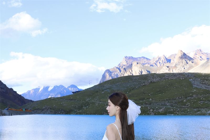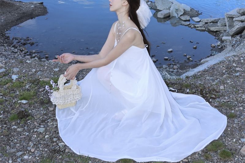 Spaghetti Midi Asymmetrical Plain A-Line Strap Dress