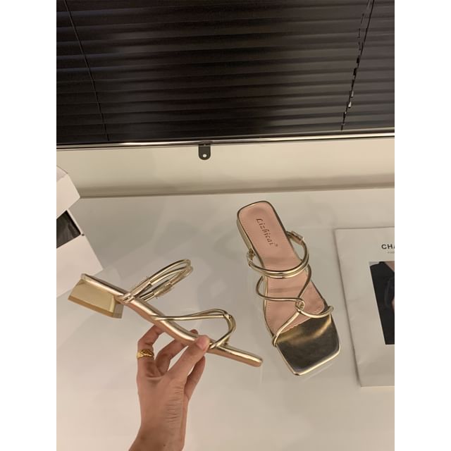 Square-Toe Low Heel Strappy Sandals