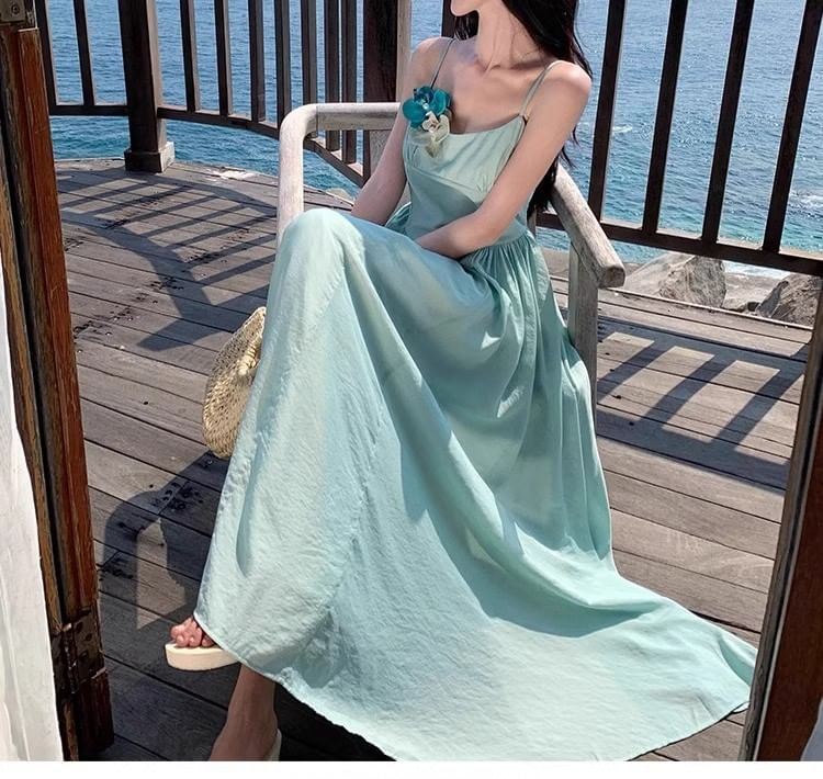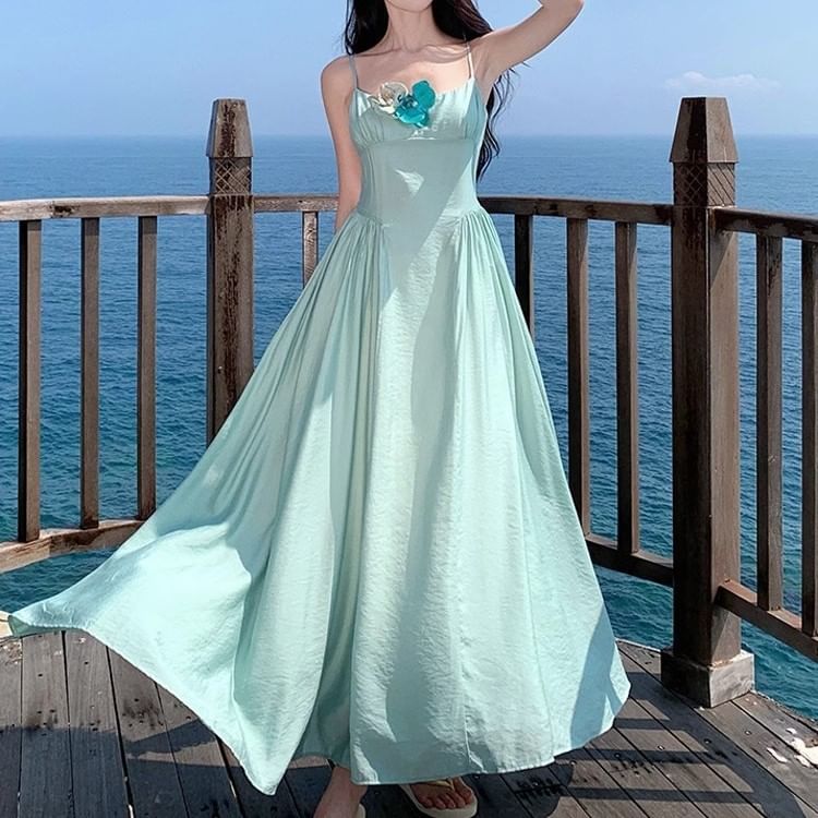 Strap Dress Spaghetti A-Line Floral Accent Maxi
