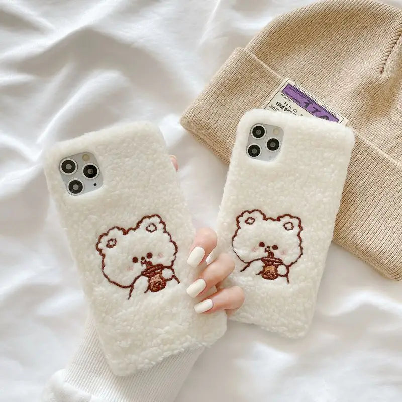 Bear Embroidered Chenille Phone Case - iPhone 12 Pro Max / 12 Pro / 12 / 12 mini / 11 Pro Max / 11 Pro / 11 / SE / XS Max / XS / XR / X / SE 2 / 8 / 8 Plus / 7 / 7 Plus / 6 / 6 Plus / Huawei W159