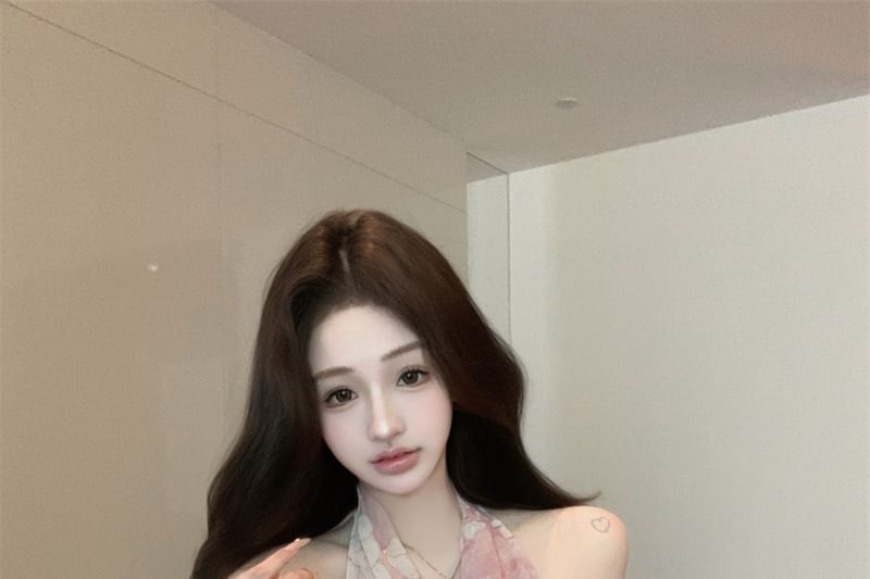 Halter Cowl Neck Floral Print Top
