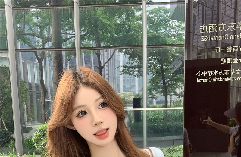 Short-Sleeve Square Neck Plain Lace Trim Tee