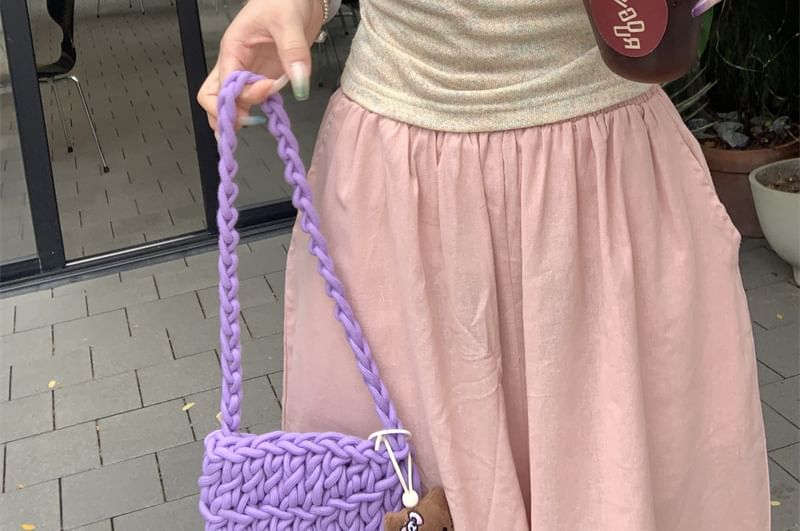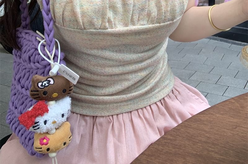 Trim Ruffle T-Shirt Fit Square Bow Short-Sleeve Neck Slim